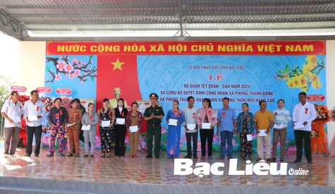 Bộ CHQS tỉnh tặng quà người dân xã Phong Thạnh Đông (TX. Giá Rai). Ảnh: T.H