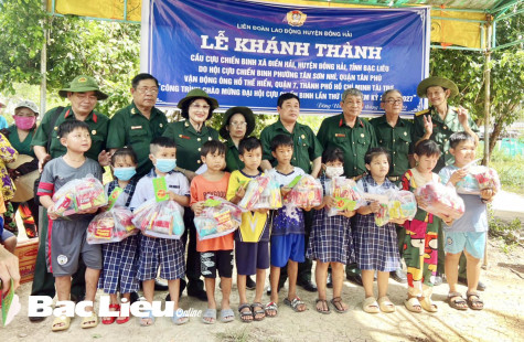 Cựu chiến binh xã Điền Hải tặng quà cho học sinh nghèo trên địa bàn xã.