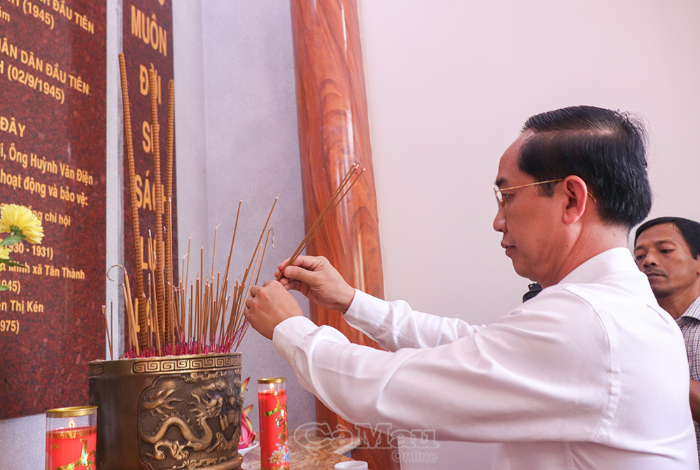 Tham dự lễ dâng hương có các đồng chí: Huỳnh Đảm, nguyên Uỷ viên Ban Chấp hành Trung ương Đảng, nguyên Chủ tịch Uỷ ban Trung ương MTTQ Việt Nam; Hồ Thanh Thuỷ, Phó Bí thư Tỉnh uỷ, Chủ tịch Uỷ ban MTTQ Việt Nam tỉnh Cà Mau; Trương Đăng Khoa, Uỷ viên Ban Thường vụ Tỉnh uỷ, Bí thư Đảng uỷ, Chủ tịch HĐND phường Tân Thành; cùng đại diện lãnh đạo các ban, ngành, đoàn thể và đông đảo Nhân dân địa phương.
