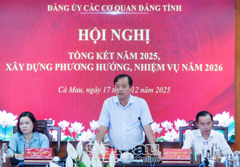 Chiều 17/12, Đảng uỷ Các cơ quan Đảng tỉnh Cà Mau tổ chức Hội nghị tổng kết công tác năm 2025 và triển khai phương hướng, nhiệm vụ năm 2026.