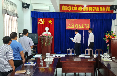 Đảng viên mới tuyên thệ tại lễ kết nạp đảng viên Chi bộ Báo Bạc Liêu. Ảnh: M.Đ
