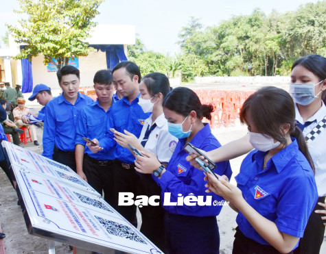 Đoàn khối các cơ quan tỉnh thực hiện công trình thanh niên “Bảng mã QR” tại Căn cứ Cái Chanh (xã Ninh Thạnh Lợi, huyện Hồng Dân).