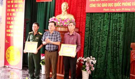 * Cùng ngày, Ban CHQS huyện Phước Long cũng tổ chức hội nghị đánh giá kết quả thực hiện công tác quân sự, quốc phòng địa phương năm 2024 và triển khai phương hướng, nhiệm vụ năm 2025. Đồng thời, khen thưởng cho những tập thể, cá nhân có thành tích tiêu biểu trong công tác giáo dục quốc phòng, an ninh và thực hiện phong trào thi đua Quyết thắng năm 2024.