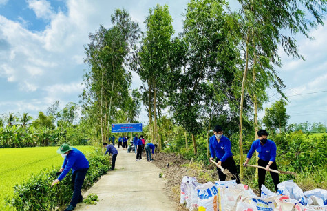 Đoàn viên - thanh niên ra quân phát quang bụi rậm. Ảnh: H.L