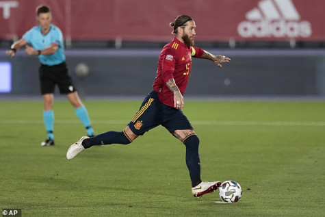 Nhập cuộc tốt và có bàn thắng sớm, Tây Ban Nha làm chủ hoàn toàn cuộc chơi. Đến phút 29, từ tình huống tấn công bên cánh trái, Dani Olmo treo bóng chuẩn xác để Ramos bật cao đánh đầu, lập cú đúp cho riêng mình và nâng tỷ số lên thành 2 – 0. Chưa dừng lại ở đó, trước khi hiệp 1 khép lại ở phút 32, thần đồng Ansu-Fati tung cú khứa lòng tuyệt đẹp, nâng tỷ số lên thành 3 – 0 cho đội chủ nhà.