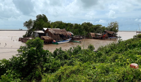 | Người dân cất nhà sinh sống khu vực ngoài đê biển Tây (phía trong kè cơ bản), khu vực vàm Tiểu Dừa, xã Khánh Tiến, huyện U Minh. |