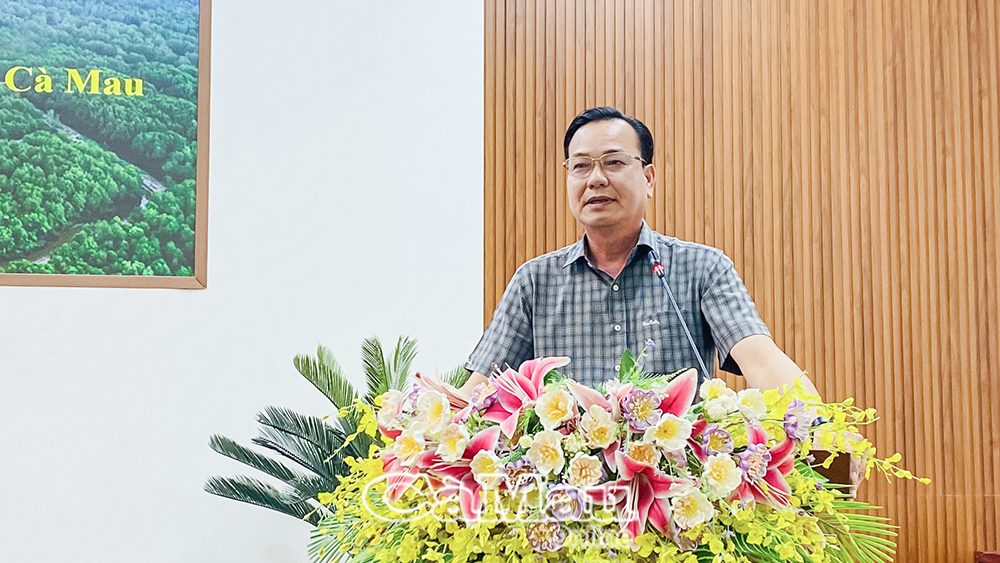 Phó Giám đốc Sở Nông nghiệp và Môi trường tỉnh Cà Mau Phan Minh Chí phát biểu tại hội nghị.