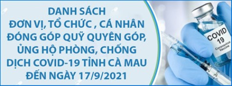 (CMO) Kết quả đến 15 giờ ngày 17/9/2021, Quỹ Quyên góp, ủng hộ phòng, chống dịch bệnh Covid-19 tỉnh Cà Mau tiếp nhận được 38.321.409.187 đồng và vật chất quy ra tiền 3,2 tỷ đồng của 597 tổ chức, doanh nghiệp và 111 cá nhân ủng hộ.
