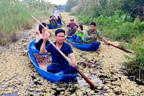| Du khách thích thú được bơi xuồng tham quan Vườn Quốc gia U Minh Hạ. |