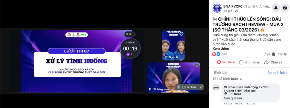 Sang “Đấu trường tháng 3” với chủ đề “Tuổi trẻ Đất Mũi trong kỷ nguyên số”, không khí trở nên sôi động với những góc nhìn mới mẻ về công nghệ và tương lai. Đội “Hành tinh của những phép màu” (CLB Sách và Hành động PVCFC THPT chuyên Phan Ngọc Hiển) gây ấn tượng với phần trình bày về Homo Deus - Lược sử tương lai, trong khi đội “Bứt phá” (CLB Sách và Hành động PVCFC Trường THPT Giá Rai) chinh phục Ban giám khảo bằng cuốn AI 9 ngày yêu.