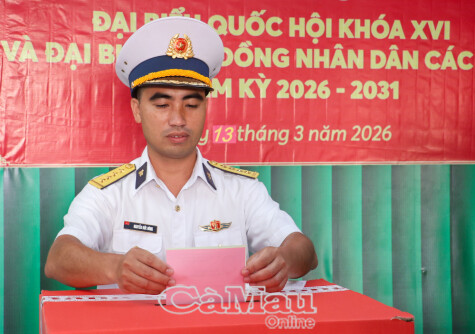 Sáng 13/3, Tổ bầu cử số 3 xã Sông Đốc (đặt tại Đồn Biên phòng Hòn Chuối) đã hoàn thành công tác bầu cử sớm. Cuộc bỏ phiếu bầu đại biểu Quốc hội khoá XVI và đại biểu HĐND các cấp nhiệm kỳ 2026-2031 diễn ra thành công tốt đẹp với sự tham gia của toàn bộ 159 cử tri trên đảo.