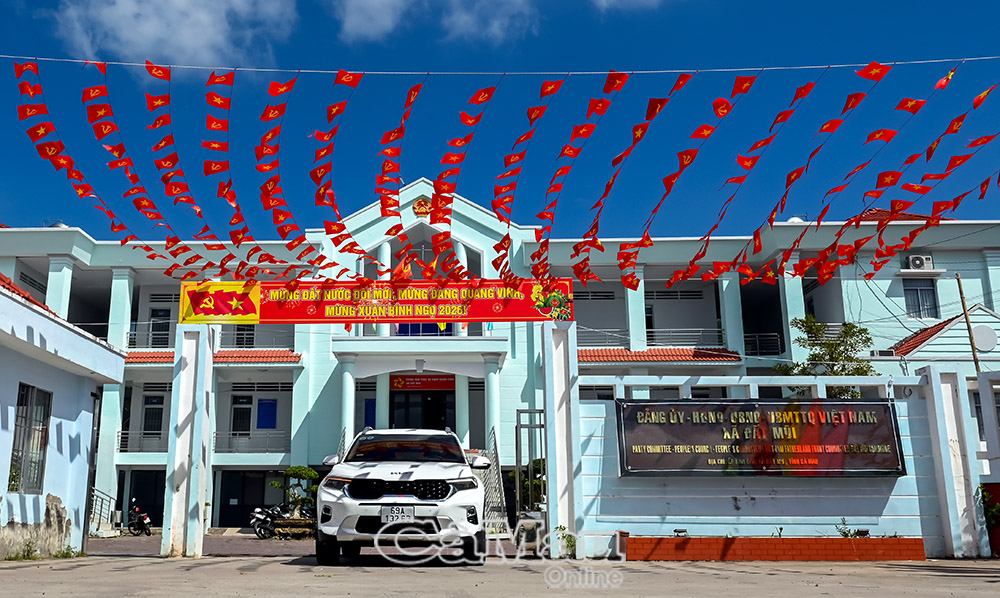 Trụ sở hành chính xã Ðất Mũi rạng rỡ đón xuân mới.