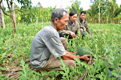 Trước nhà ông Hai Nhỏ (Dương Thành Nhỏ) là rẫy dưa hấu và dưa leo đang vào độ thu hoạch. Anh Lê Văn Cuốl, cán bộ xã, trầm trồ: “Chú Hai thì giỏi nhất xứ, rẫy màu của chú quanh năm, hết giống này tới loại khác”.