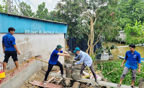 Đoàn viên - thanh niên huyện Vĩnh Lợi tham gia xây dựng cầu nông thôn. Ảnh: H.L