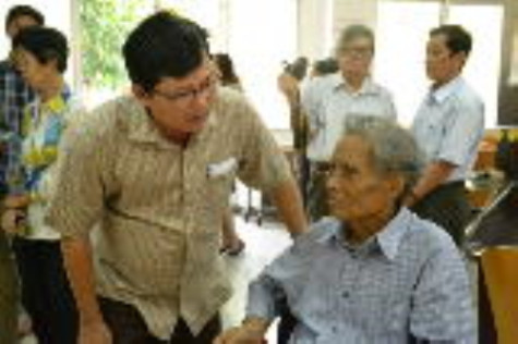 | Nhà báo Nguyễn Chiến, Tổng biên tập Báo Cà Mau, hỏi thăm sức khỏe Nhà báo Trần Thanh Phương hôm ghé thăm ông vào ngày 7/3. |