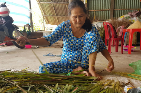 | Hình ảnh những bà lão tỉ mỉ vót từng cọng dừa đã trở nên quen thuộc. |