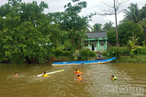 | Mùa hè, trẻ em thường tụ tập bơi lội trên các con sông, kinh rạch, cần sự giám sát chặt chẽ của phụ huynh. |