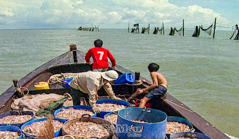 | Vận chuyển tôm cá từ đáy hàng khơi vào Vàm Lũng - Tân Ân - Ngọc Hiển. Ảnh: LÊ VŨ HOÀNG |