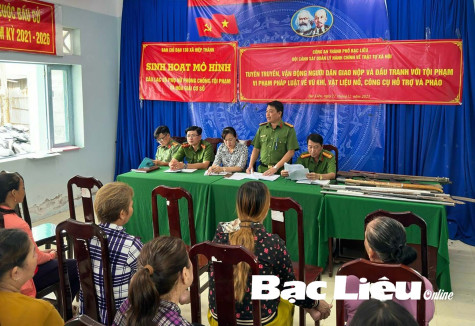 Công an TP. Bạc Liêu vận động người dân giao nộp vũ khí, vật liệu nổ, công cụ hỗ trợ và pháo. Ảnh: K.K