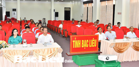 Quang cảnh hội nghị trực tuyến tại điểm cầu Bạc Liêu về tổng kết công tác tuyên truyền miệng.