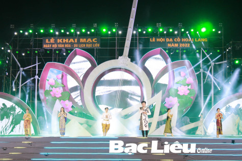 Biểu diễn trang phục truyền thống dân tộc Khmer tại lễ khai mạc Ngày hội Văn hóa - Du lịch Bạc Liêu năm 2022.