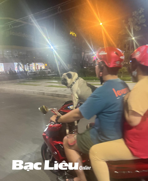Thời gian gần đây, nhiều người tham gia giao thông có sở thích chở thú cưng đi dạo phố. Thú nuôi được người điều khiển phương tiện giao thông cho đứng phía sau yên xe máy, thậm chí là cho đứng lên đầu xe máy - ảnh.