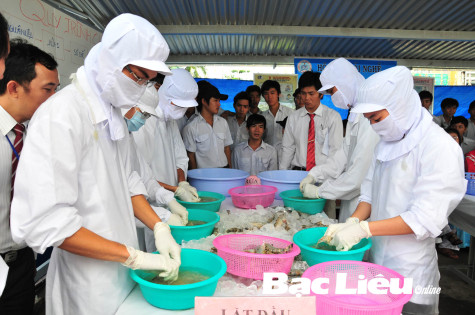 Kiểm tra tay nghề sau đào tạo (nghề chế biến thủy sản xuất khẩu) tại Trường cao đẳng KT-KT Bạc Liêu.
