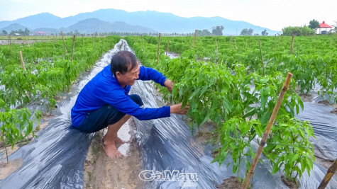| Người dân ấp Vĩnh Hoà, xã Lạc Quới, huyện Tri Tôn, tỉnh An Giang, nhớ ơn bác Kiệt đã đánh thức tiềm năng, giúp cho vùng quê này ngày càng no ấm. (Trong ảnh: Ông Trần Việt Tiến, ấp Vĩnh Hoà, đang chăm sóc ruộng ớt). |