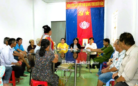 Ban công tác Mặt trận các khóm, ấp tổ chức hội nghị tiếp xúc, đối thoại của người đứng đầu cấp ủy đảng, chính quyền với Nhân dân năm 2023. Ảnh: N.Q