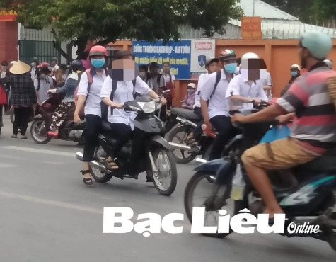 Dù các trường đã xây dựng mô hình “Cổng trường an toàn giao thông”, nhưng giờ tan học còn nhiều tình huống, hình ảnh khiến nhiều phụ huynh phải rùng mình lo lắng. Có mặt tại Trường THPT Phan Ngọc Hiển (TP. Bạc Liêu) ngay khi cổng trường vừa mở, chúng tôi tận mắt chứng kiến nhiều xe máy lao lên cầu Kim Sơn với tốc độ chóng mặt, trong khi mũ bảo hiểm vẫn chưa cài quai, thậm chí có em còn để đầu trần.