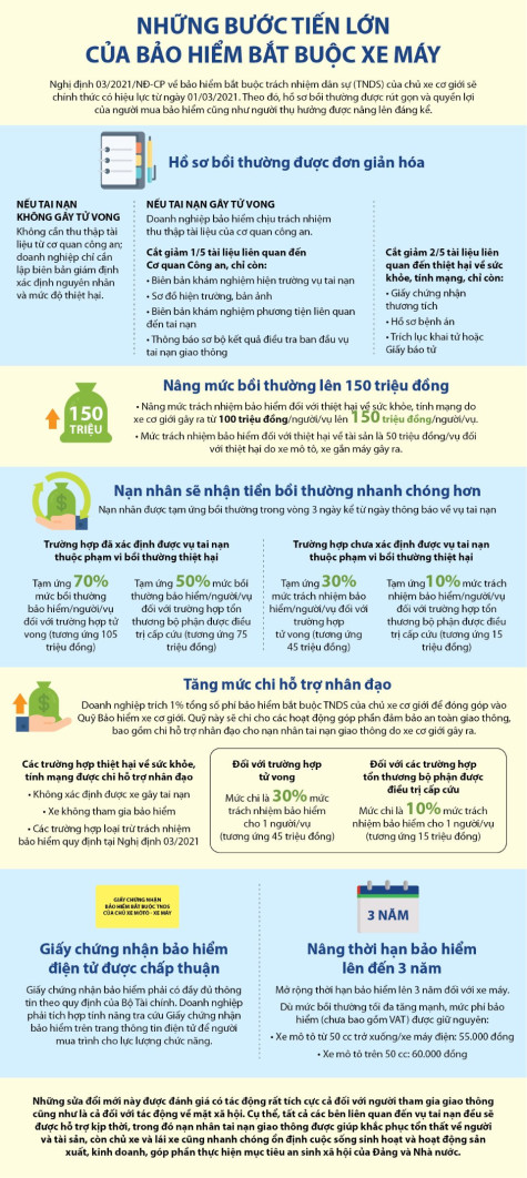 (CMO) Từ ngày 1/3, bảo hiểm bắt buộc với xe máy có thời hạn 3 năm. Cơ quan bảo hiểm có quyền từ chối bồi thường với tài xế có độ cồn trong máu...