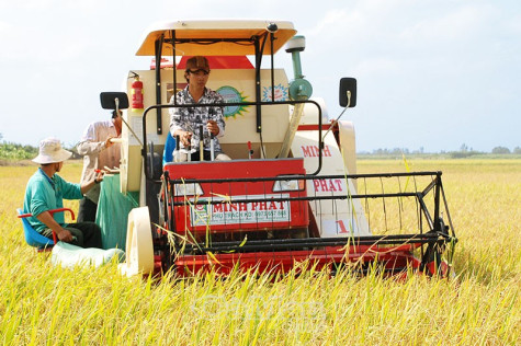 | Cơ giới hoá khâu thu hoạch lúa còn rất khó khăn, toàn vùng sản xuất hiện chỉ có 15 máy gặt đập nhỏ, công suất từ 1,5-2 ha/ngày nên khoảng 80% diện tích phải thu hoạch thủ công. |