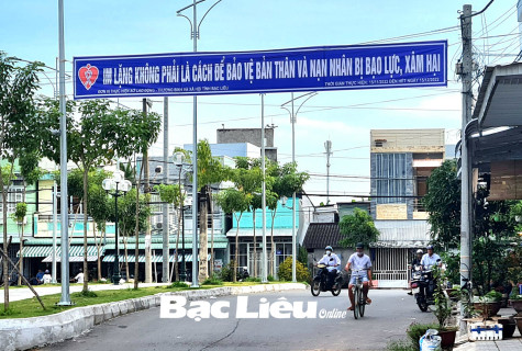 Băng-rôn tuyên truyền phòng chống bạo lực gia đình. Ảnh: T.Q