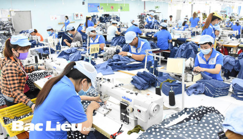 Công nhân làm việc tại Nhà máy may VINATEX Bạc Liêu. Ảnh: K.T