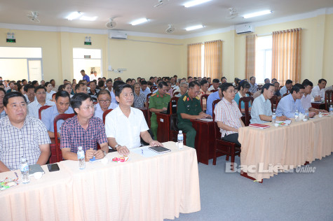 Quang cảnh buổi tiếp xúc cử tri tại xã Vĩnh Mỹ A (huyện Hòa Bình).