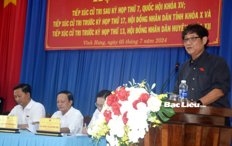 Chiều 5/7, Đoàn đại biểu Quốc hội (ĐBQH) tỉnh gồm ông Nguyễn Huy Thái - Phó trưởng đoàn chuyên trách Đoàn ĐBQH tỉnh; bà Lê Thị Ngọc Linh - Chủ tịch Hội LHPN tỉnh; các vị đại biểu HĐND 2 cấp đến tiếp xúc gần 100 cử tri xã Vĩnh Hưng (huyện Vĩnh Lợi).