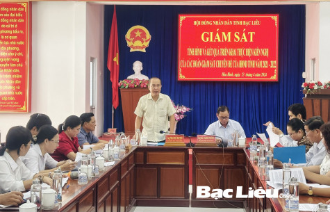 Báo cáo với đoàn giám sát, UBND huyện Hòa Bình cho biết, để thực hiện kiến nghị của các đoàn giám sát HĐND tỉnh tại 4 đợt giám sát chuyên đề đặt ra, Thường trực UBND huyện chỉ đạo thực hiện quyết liệt, thường xuyên và đạt được những kết quả đáng ghi nhận. Cụ thể, tại chuyên đề giám sát việc thực hiện các kiến nghị của cử tri tại các kỳ họp của HĐND tỉnh khóa IX, giai đoạn 2017 - 2019, huyện đã chỉ đạo xử lý nghiêm các trường hợp lấn chiếm, tái chiếm đất công, đất hành lang an toàn giao thông đường bộ (nhất là tuyến cặp kênh xáng Bạc Liêu - Cà Mau); triển khai thực hiện xong 6/8 kiến nghị của cử tri như kiến nghị xây dựng đường vào Bia chiến thắng xã Vĩnh Bình; đầu tư nạo vét gần như hoàn thiện hệ thống kênh cấp II và cấp III vượt cấp, đảm bảo nguồn nước phục vụ cho bà con sản xuất…