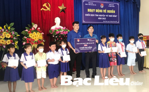 Đoàn cơ sở Công ty Điện lực Bạc Liêu trao học bổng cho các em học sinh có hoàn cảnh khó khăn.