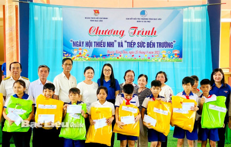 Giữa tháng 8, các hoạt động tiếp sức học sinh đến trường được Đoàn Thanh niên các cấp trong tỉnh triển khai thực hiện bằng những việc làm cụ thể, thiết thực. Theo đó, nhiều suất học bổng, phần quà đã được trao tận tay các em. Mới đây, tại Trường tiểu học Trần Văn Tất (xã Vĩnh Lộc, huyện Hồng Dân), Ban Thường vụ Tỉnh đoàn phối hợp với Câu lạc bộ Kết nối yêu thương tỉnh và Huyện đoàn Hồng Dân tổ chức Chương trình Ngày hội thiếu nhi và Tiếp sức đến trường, năm học 2023 - 2024. Chương trình đã trao tặng 40 phần quà, mỗi phần trị giá 700.000 đồng, gồm: cặp, tập, bộ dụng cụ học tập, áo mưa, sữa và 200.000 đồng tiền mặt. Dịp này, Chi bộ Kê khai kế toán thuế - Cục Thuế tỉnh cũng đã tặng 10 thẻ bảo hiểm y tế cho các em học sinh có hoàn cảnh khó khăn.