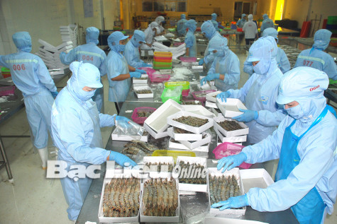 Đóng gói tôm xuất khẩu tại Công ty Tân Phong Phú (huyện Hòa Bình). Ảnh: L.D