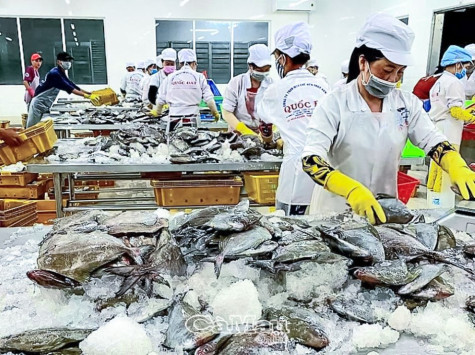 Phó tổng giám đốc Công ty Chế biến thuỷ sản Quốc Ðạt Trần Thị Kiều Oanh cho biết: “Công ty áp dụng đầy đủ các quy định phòng, chống dịch cho công nhân tại công ty; đồng thời, luôn theo dõi sát sao người ra vào tại khu chế biến để duy trì trạng thái an toàn cho công ty”.