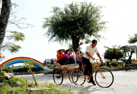 Du khách thích thú khi được đi xe lôi tại Điểm dừng chân Tài Lộc (huyện Thới Bình). Đây là điểm tham quan mới, chỉ cách TP Cà Mau 17 km, thu hút gần 500 lượt khách dịp Tết dương lịch.