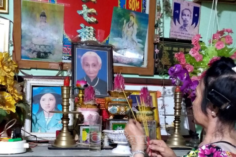 | Mẹ Việt Nam anh hùng Đào Thị Nhung và Anh hùng Hồ Thị Kỷ được bà Hồ Thị Sao thờ tại gia đình ở Phường 7, TP Cà Mau. |