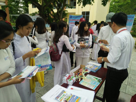 Không chỉ tư vấn, hướng nghiệp cho học sinh trong tỉnh, năm nay Phân hiệu còn mở rộng ra các trường THPT ngoài tỉnh. (Ảnh chụp tại một trường THPT thuộc tỉnh Kiên Giang). |