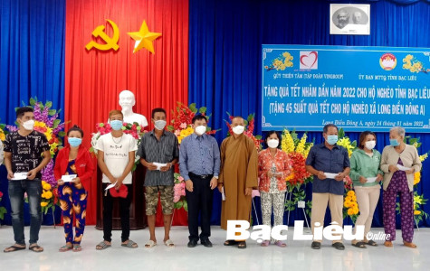 Ủy ban MTTQ Việt Nam tỉnh vận động mạnh thường quân trao quà tết cho người dân khó khăn ở huyện Đông Hải. Ảnh: T.T