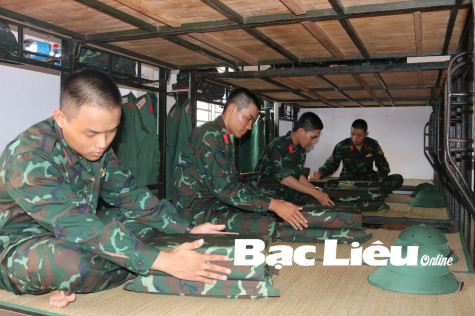 Chiến sĩ mới (Trung đoàn 894) thực hiện các chế độ trong ngày. Ảnh: T.H