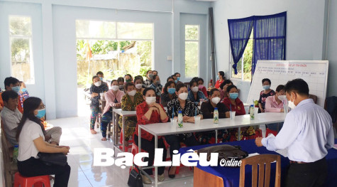 Tập huấn kiến thức chăn nuôi gà cho HV, PN xã Long Thạnh (huyện Vĩnh Lợi). Ảnh: M.H