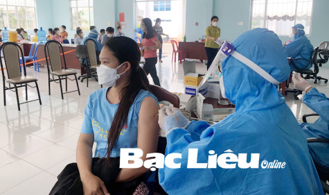 Nhân viên y tế của Trung tâm Kiểm soát bệnh tật tỉnh tiêm mũi 3 vắc-xin phòng COVID-19 cho người dân. Ảnh: C.K