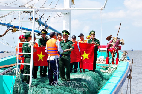 | Đồn BP Sông Đốc tặng cờ Tổ quốc cho ngư dân và vận động ngư dân tham gia bảo vệ chủ quyền vùng biển. |