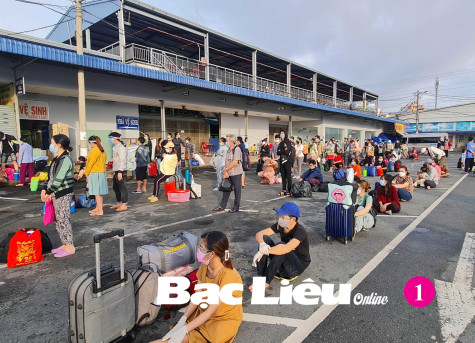 Ngay từ sáng sớm ngày 11/9/2021, tại Bến xe miền Tây (TP. Hồ Chí Minh), hàng trăm người dân quê Bạc Liêu đã có mặt để làm thủ tục về quê. Những chuyến xe đầu tiên rước công dân Bạc Liêu bị kẹt lại tại TP. Hồ Chí Minh trở về quê đã sẵn sàng lăn bánh (ảnh 1, 2). Sau khi hoàn tất các thủ tục, đoàn xe khởi hành lúc 9 giờ 30 phút sáng cùng ngày, thẳng tiến về hướng Bạc Liêu với sự hỗ trợ từ lực lượng Cảnh sát giao thông tỉnh dẫn đường.